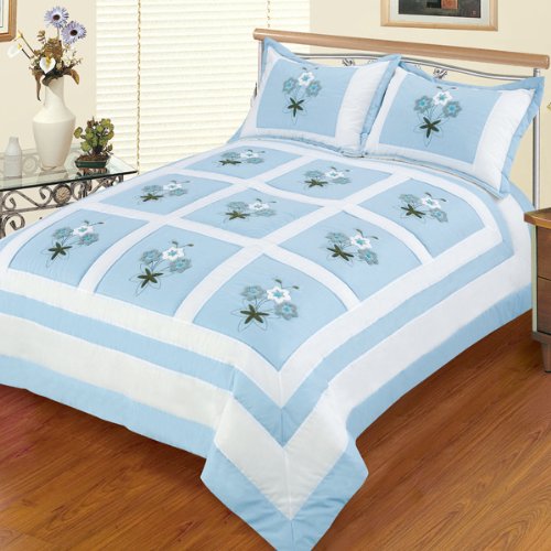 ... Blancho Bedding - [Sky Blue Fantasy] Hand-Appliqued Quilt Set with 25.3 OZ filling (Full/Queen Size)Cheapest Price 2013 Blancho Bedding - [Sky Blue Fantasy] Hand-Appliqued Quilt Set with 25.3 OZ filling (Full/Queen Size)
