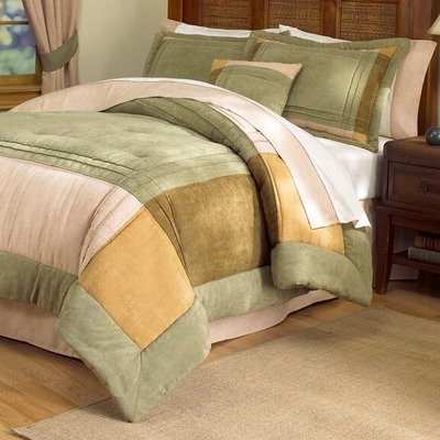 Chesterfield comforter sets are made with delu by e polyester micro suede hand made in China Comforters are hand made multi tone blocks in micro suede fabric top filled with polyester for super soft te by ture and year round enjoyment King 8-piece sets contain one 102-inch by 90-inch comfor